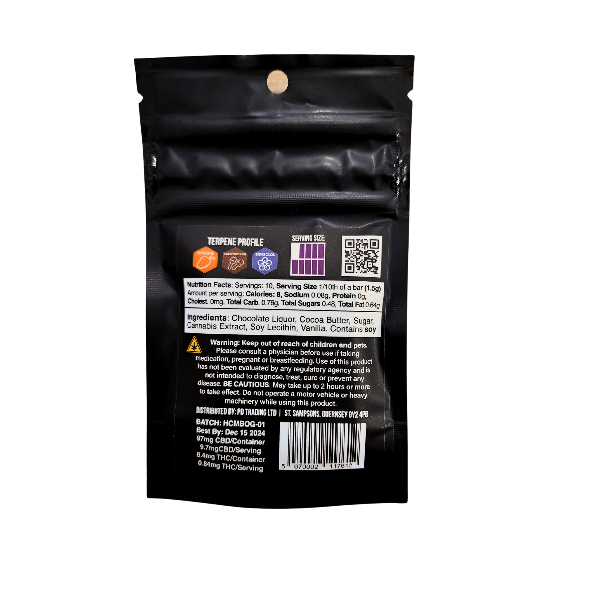 This CBD-to-THC ratio in Phyre Dawg chocolate follows specific regulations set out by the States of Guernsey.